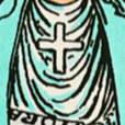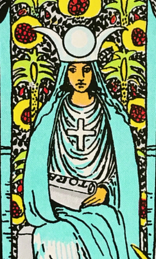 여사제는 머리에 세 개의 초승달이 포함된 왕관을 쓰고 있습니다.