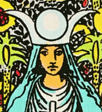 마법사가 의지를 통해 바깥세상을 향해 행동했다면, 여사제는 내면의 세계에 침잠하는 태도를 보여줍니다.
