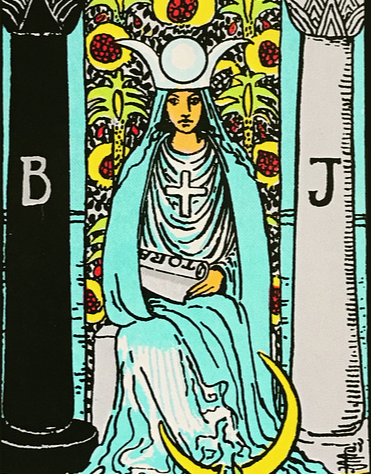 여사제는 두 기둥 사이에 앉아 있습니다.