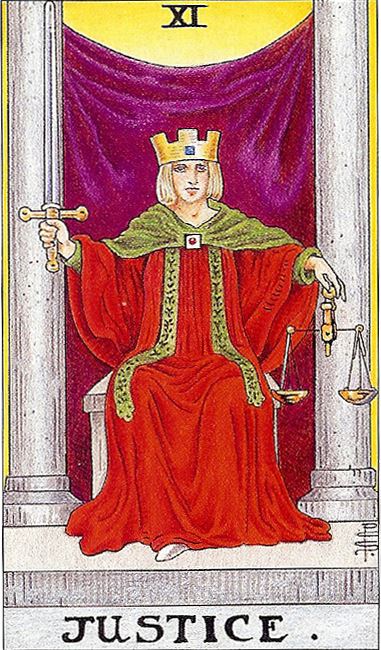 손에 쥔 저울과 검은 행동과 감정 사이의 균형, 진실과 판단 사이의 균형을 요구합니다. 때로는 이 카드가 등장했을 때 "내가 얼마나 정직한가?" 또는 "이 상황에서 정말 공정하게 행동하고 있는가?"를 스스로에게 되묻게 됩니다.