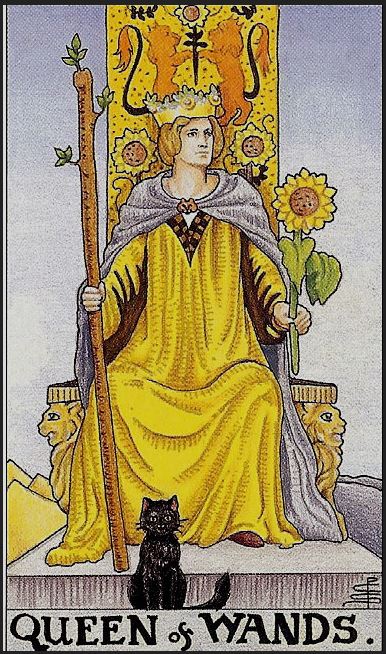완드 퀸 (Queen of Wands) – 당당함, 자기 확신, 창의적인 에너지