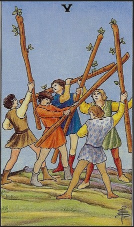 완드 5 (Five of Wands) – 갈등, 경쟁, 혼란의 에너지
