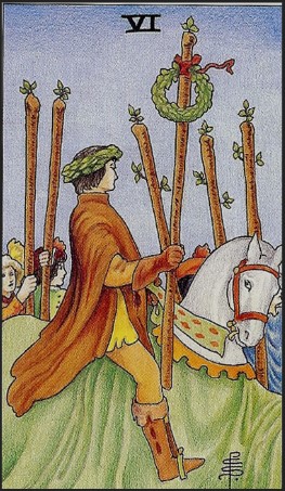완드 6 (Six of Wands) – 승리, 인정, 성취의 기운